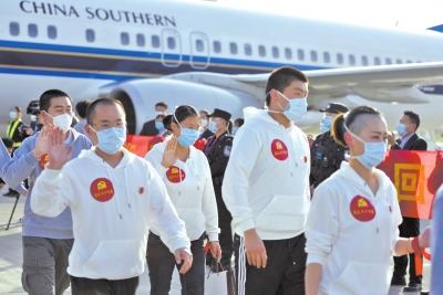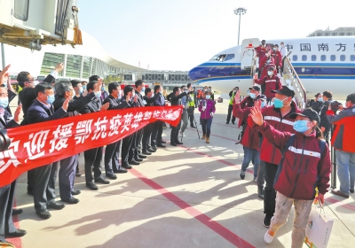 經(jīng)一個(gè)多月的艱苦奮戰(zhàn),453名健康勇士圓滿出色地完成了援助工作任務(wù),平平安安、載譽(yù)歸來!省衛(wèi)生健康委闞全程主任等領(lǐng)導(dǎo)到機(jī)場迎接,并轉(zhuǎn)達(dá)省委書記王國生、省長尹弘的親切慰問。
