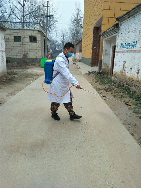 他不是為村民分發(fā)消毒液,就是對村主干道、公共衛(wèi)生間每天堅持消毒,雙腿累腫了,嘴唇起了泡,可他咬牙堅持。村委成員見他每天像個陀螺一樣高速的運轉(zhuǎn)著,讓他休息幾天,可楊建崗說啥也不同意。每天還是堅持著值班,發(fā)現(xiàn)問題及時糾正,對有些不理解的村民進(jìn)行說服教育。除了值班,他還與其他志愿者一起做好流動崗,發(fā)現(xiàn)有扎堆的村民立即勸阻,發(fā)現(xiàn)有不戴口罩者一律勸回,對亂走親戚的村民堅決說“不”。