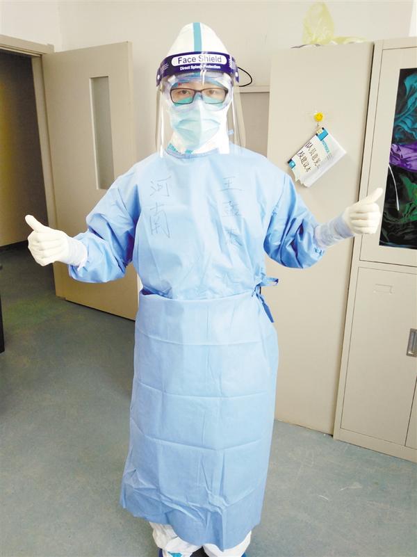 2月27日,帶著興奮和緊張,王孟杰走進(jìn)病房。也許是第一次身著防護(hù)服工作,進(jìn)入病房2個(gè)小時(shí)后,她開(kāi)始頭暈、惡心,滿身大汗?!爱?dāng)時(shí)我很害怕,以為自己不能勝任這份工作,害怕被遣返回家?!蓖趺辖苷f(shuō)。