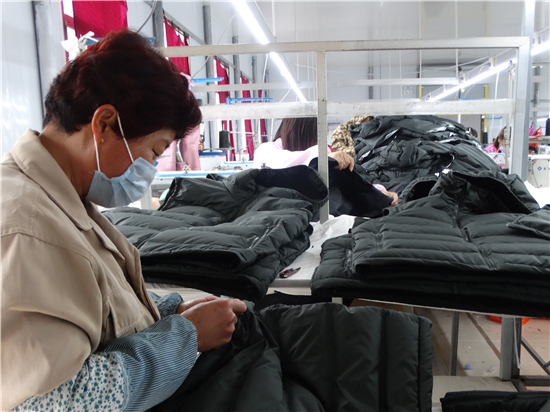 疫情不能放松,復(fù)工復(fù)產(chǎn)也要穩(wěn)妥推進(jìn)。連日來(lái),沈丘縣婦聯(lián)鼓勵(lì)引導(dǎo)和組織廣大婦女群眾科學(xué)安全有序助力企業(yè)、農(nóng)業(yè)合作社、扶貧車間等復(fù)工復(fù)產(chǎn),確保戰(zhàn)"疫"扶貧兩不誤,為統(tǒng)籌推進(jìn)防疫戰(zhàn)和脫貧攻堅(jiān)戰(zhàn)貢獻(xiàn)巾幗力量。圖為沈丘縣周營(yíng)鎮(zhèn)馬營(yíng)村慧恩服飾有限公司來(lái)料加工扶貧車間內(nèi),女工們正在生產(chǎn)線上加工訂單服裝。