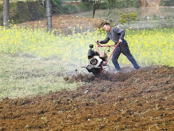 圖三 昨日,沈丘縣卞路口鄉(xiāng)一農民正在用小型農機犁地。連日來,氣溫不斷回升,當地農民搶抓有利時機,進行犁地、澆水、除草等春季管理,田間地頭一派忙碌景象。 黃海濤 攝