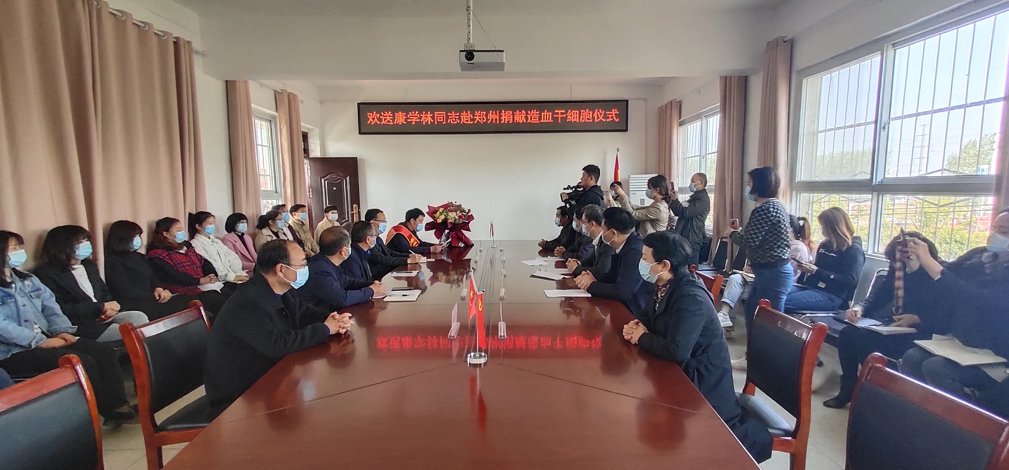 4月13日上午,在川匯區(qū)醫(yī)保局三樓會(huì)議室,我市為康學(xué)林赴鄭州捐獻(xiàn)造血干細(xì)胞舉行歡送儀式。副市長(zhǎng)、市紅十字會(huì)會(huì)長(zhǎng)秦勝軍出席。市政府副秘書長(zhǎng)唐峰,市紅十字會(huì)常務(wù)副會(huì)長(zhǎng)毛立營(yíng),市紅十字會(huì)秘書長(zhǎng)高春,川匯區(qū)副區(qū)長(zhǎng)、區(qū)紅十字會(huì)會(huì)長(zhǎng)晉瑞英,川匯區(qū)衛(wèi)健委主任任艷陽(yáng),川匯區(qū)醫(yī)療保障局黨組書記王平立,川匯區(qū)醫(yī)療保障局局長(zhǎng)欒春光,川匯區(qū)衛(wèi)健委副主任楊平云等參加。