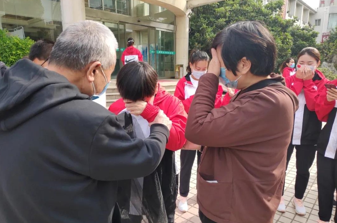 儀式結(jié)束后,醫(yī)療隊(duì)隊(duì)員和家人、同事相擁相抱,現(xiàn)場(chǎng)一片沸騰……終于見到了思念已久的家人。