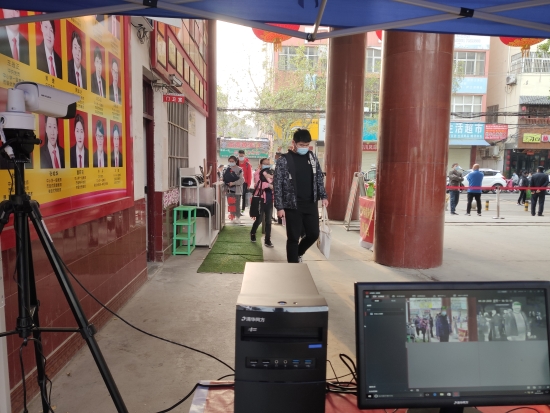 清晨6:30,鄲城縣第二實驗中學工作人員已經(jīng)按照演練預案準時到位,學校大門兩側(cè)入口處安置有紅外測溫設(shè)備?!爱攲W生走進測溫儀,屏幕中的人像就能顯示體溫了?!钡诙嶒炛袑W校長邢懷芳說,這個紅外線測溫儀是個“黑科技”,運用熱成像原理,能快捷、精準檢測體溫,使學生快速通過,避免出現(xiàn)“扎堆”現(xiàn)象。