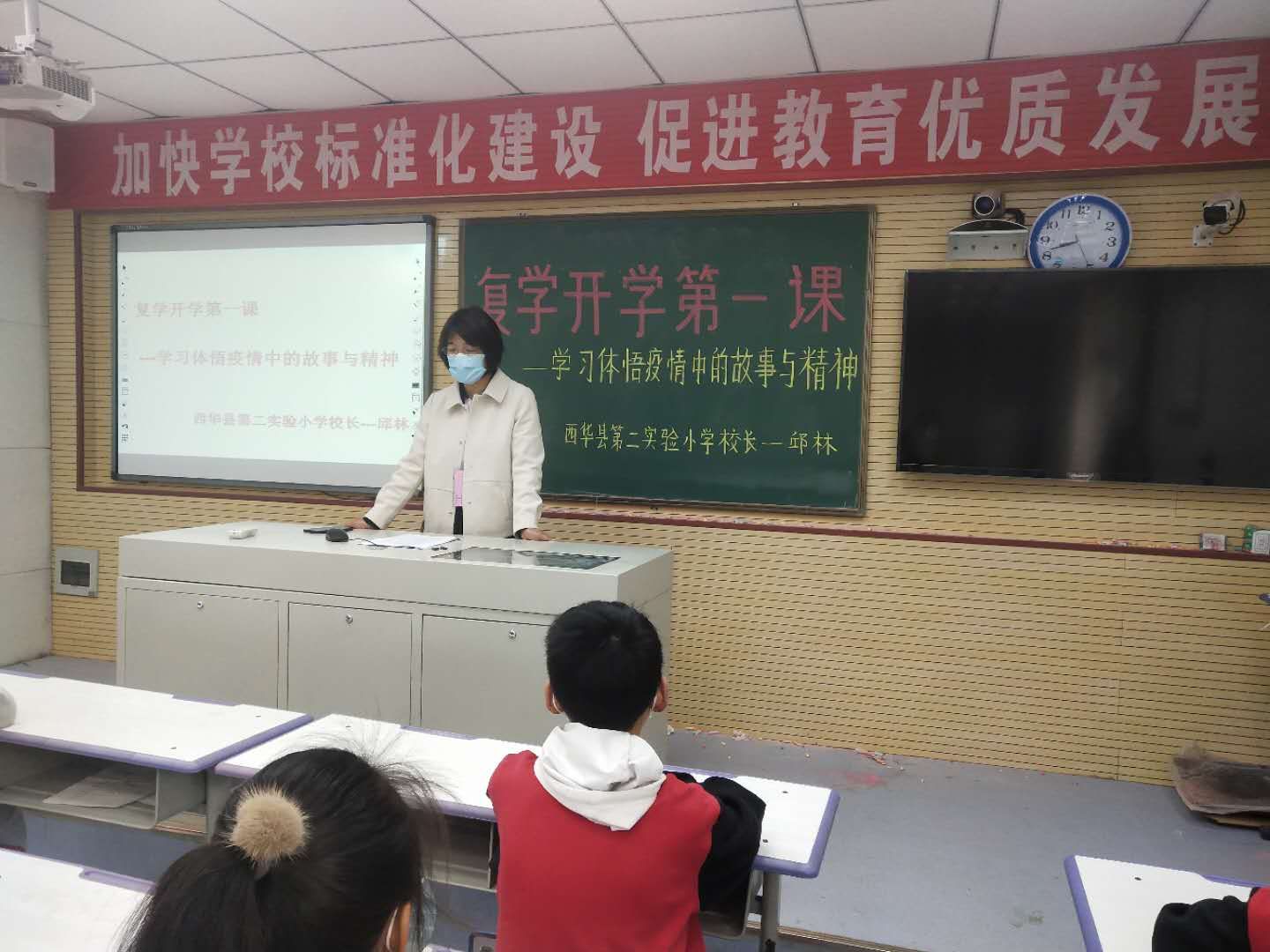 4月27日,根據(jù)防控疫情形勢(shì)好轉(zhuǎn),按照上級(jí)有關(guān)部門(mén)要求,西華縣第二實(shí)驗(yàn)小學(xué)做好了各項(xiàng)安全準(zhǔn)備工作,四、五、六年級(jí)返校復(fù)學(xué)。開(kāi)學(xué)的第一課的主題為“生命可貴,安全第一”。