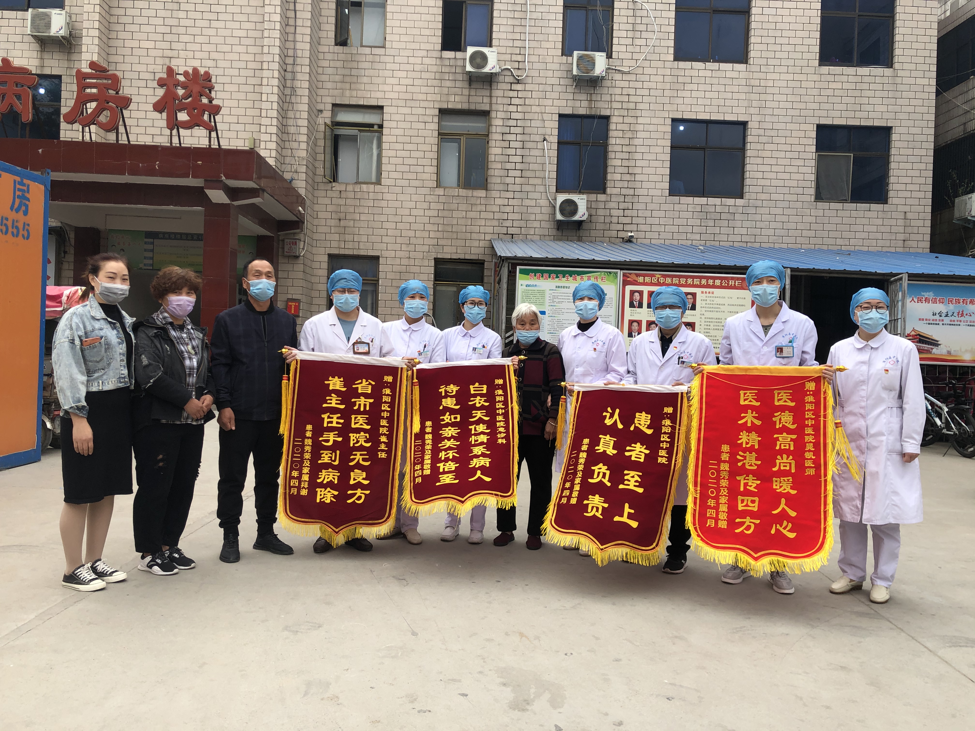 “真是太感謝你們了!技術(shù)和服務(wù)絕對(duì)雙一流!”4月27日上午,一名86歲老太太的家屬手捧四面錦旗來到淮陽區(qū)中醫(yī)院,親自將錦旗送到副院長(zhǎng)劉永、外科主任崔成品、ICU醫(yī)師晁凱、護(hù)士長(zhǎng)劉婷婷、急診科護(hù)士長(zhǎng)李琴手中。患者家屬握著崔主任的手眼含熱淚久久不能松開,“真是沒想到能撿回我那老母親的一條命!多虧了崔主任,多虧了咱們醫(yī)院的全體醫(yī)護(hù)人員,在別的醫(yī)院都不給治療了,是你們中醫(yī)院幫我家老太太搶回一命啊!”患者家屬的心情久久不能平復(fù),感激之情難以言表。
