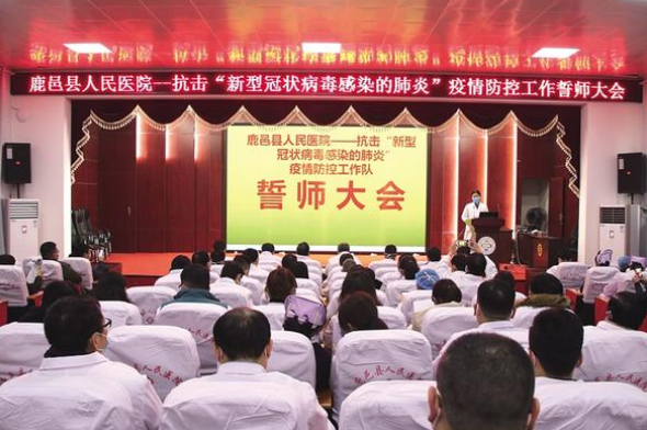 下午4時(shí),老子故里鹿邑縣,縣域醫(yī)療健康服務(wù)集團(tuán)牽頭單位、該縣規(guī)模最大的綜合性二級(jí)甲等公立醫(yī)院——縣人民醫(yī)院正在召開(kāi)新冠肺炎疫情防控工作誓師會(huì)。