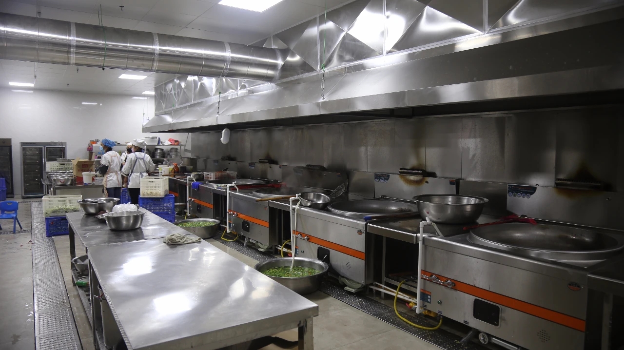 今年以來(lái),學(xué)校投資3000萬(wàn)元,新建一棟一萬(wàn)平方米學(xué)生餐廳,按照明廚亮灶標(biāo)準(zhǔn),購(gòu)置了全套現(xiàn)代化餐飲設(shè)備,為學(xué)生加工、制作、烹飪餐飲食品。