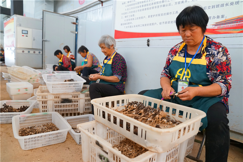 在大許寨鎮(zhèn)羅古洞村華瑞農牧食用菌基地的包裝車間內,60多歲的村民王梅芝在和其他工人們一起包裝羊肚菌。她說,自己每月有1000多元的收入、“不用外出,在家門口掙錢,還能照顧孫子?!蓖趺分フf。