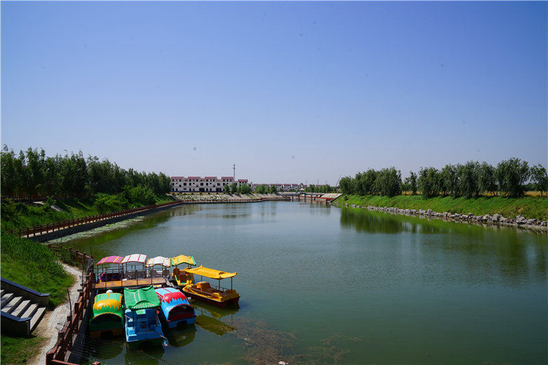 采風團記者走進鄲城縣秋渠鄉(xiāng)靳莊村,只見綠樹掩映著干凈整潔的道路,楊柳倒映在荷塘碧波……變化始于2019年5月份。秋渠鄉(xiāng)黨委書記梁輝說,靳莊村于去年5月份被列為鄲城縣“六村共建”試點村后,村里24個廢坑塘,有的被改造成湖泊,有的被墊平作為宅基地由村里拍賣,所得收入用于村里發(fā)展建設?!傲骞步ā本褪恰拔拿鞔濉薄捌桨泊濉薄靶l(wèi)生村”“產業(yè)富民村”“美麗宜居村”“黨建示范村”一體建設。