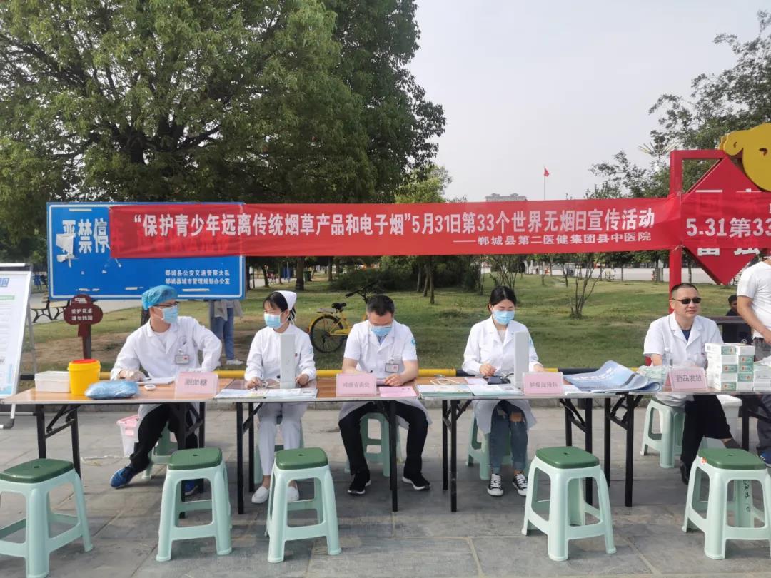 今年5月31日是第33個(gè)世界無煙日,本次主題是“保護(hù)青少年遠(yuǎn)離傳統(tǒng)煙草產(chǎn)品和電子煙”。5月30日上午,鄲城縣第二醫(yī)療健康服務(wù)集團(tuán)縣中醫(yī)院在世紀(jì)廣場(chǎng)開展了義診宣傳活動(dòng),進(jìn)一步加強(qiáng)煙草危害和控?zé)熣咝麄鳎茖W(xué)引導(dǎo)青少年樹立拒絕傳統(tǒng)煙草產(chǎn)品和電子煙的健康理念,遠(yuǎn)離煙草危害,保護(hù)青少年身心健康。