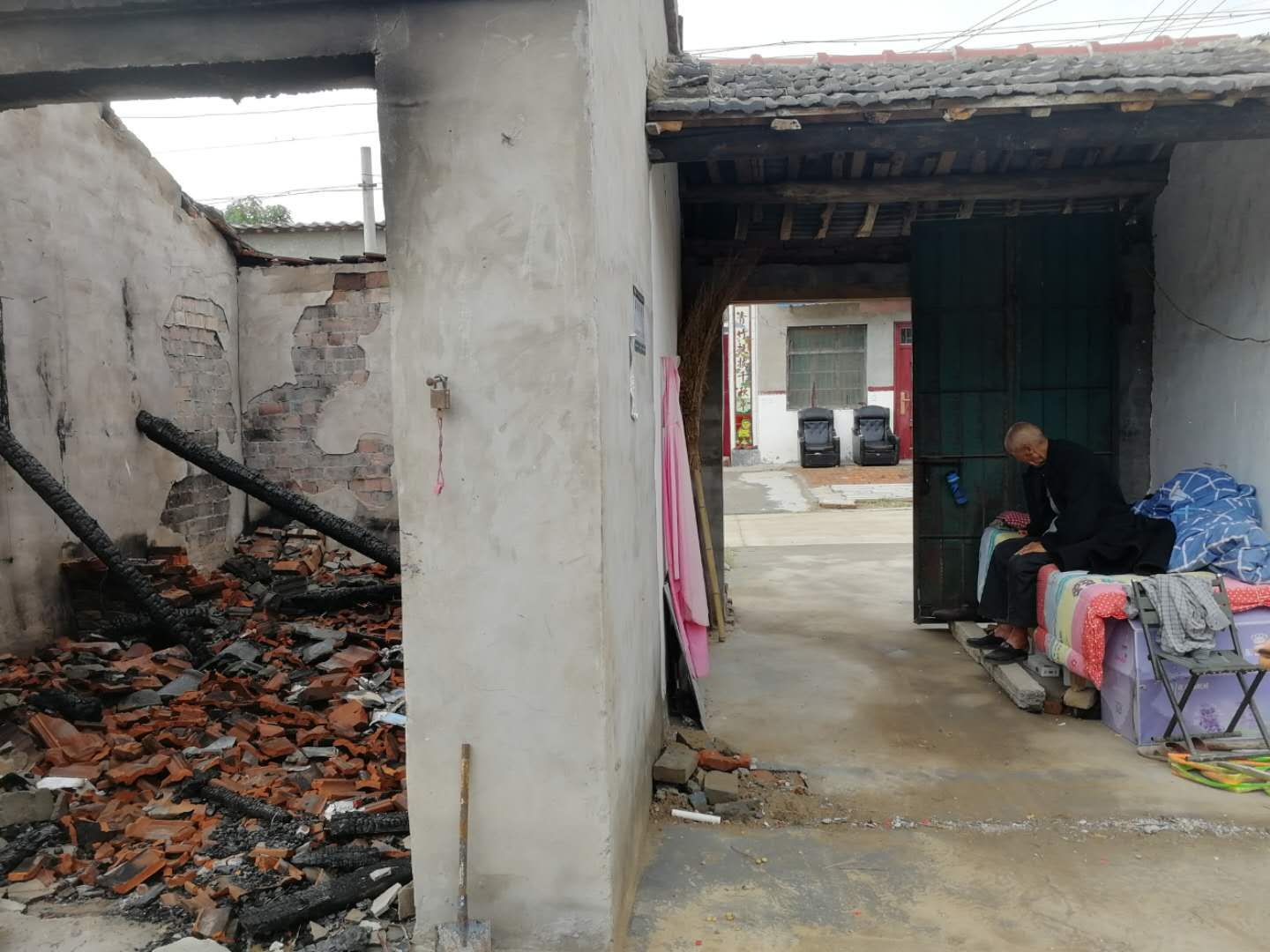 原來(lái),眼看著就到了脫貧攻堅(jiān)的驗(yàn)收期,2020年4月14日晚上10時(shí)許,李洪范年齡大,睡覺(jué)前有吸煙的習(xí)慣,自己在吸煙時(shí)不小心引發(fā)了火災(zāi),房屋、家電,還有剛?cè)〕鰜?lái)的1400元低保金燒了個(gè)干干凈凈,好在沒(méi)有人員傷亡,目前李洪范自己在大門過(guò)道中將就居住。