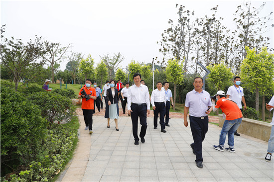開園儀式結(jié)束后,與會領(lǐng)導(dǎo)在志愿者的引導(dǎo)下乘車沿公園步道對賈魯河生態(tài)濱河公園進行參觀游覽。