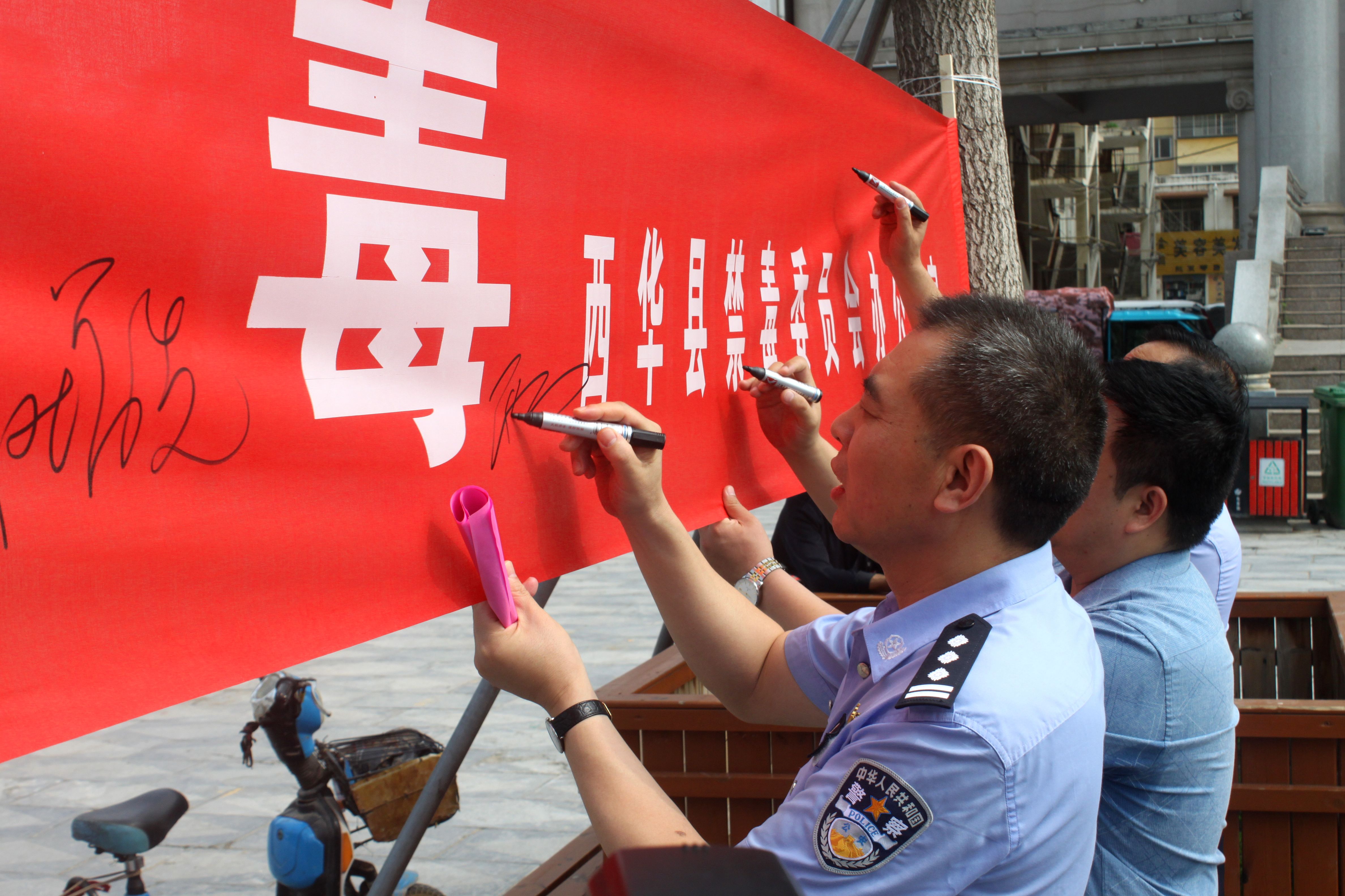 活動(dòng)現(xiàn)場(chǎng),趙增先在縣公安局政委邢玉周等同志的陪同下,觀看活動(dòng)宣傳展板、在宣傳條幅上簽名,并走上街頭發(fā)放宣傳資料,通過(guò)多種形式向過(guò)往群眾普及禁毒知識(shí),倡導(dǎo)群眾珍愛(ài)生命、拒絕毒品,號(hào)召大家一同加入全民禁毒大家庭,齊心協(xié)力共同抵制毒品。