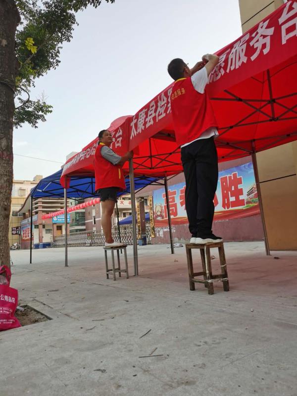 6日下午3時(shí)許,鄭雪艷和王作宇二人被安排到太康縣華夏外國(guó)語(yǔ)高考考點(diǎn)負(fù)責(zé)為考生和家長(zhǎng)搭建11個(gè)茶水棚?!跋挛?點(diǎn)正是一天中最熱的時(shí)候,考點(diǎn)附近也沒(méi)有樹蔭?!碧悼h網(wǎng)信辦副主任高一麟回憶說(shuō),要在天黑之前搭建好11個(gè)茶水棚,對(duì)于鄭雪艷和王作宇兩人來(lái)說(shuō)并非易事。