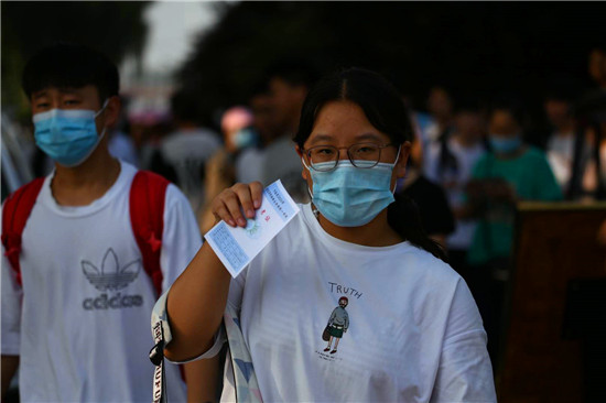 7月7日上午,2020年高考迎來開考,周口市10萬考生步入考場。圖為周口考點的考生入場。