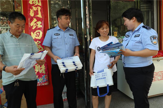 贈(zèng)送手提袋只是該局眾多宣傳手段的一種。活動(dòng)開展以來,554個(gè)警務(wù)工作站的駐村民警、輔警已經(jīng)基本完成了所有家庭的入戶走訪,發(fā)放了反詐傳單50余萬(wàn)份,1671個(gè)“警民一家親”微信群每天推送反詐騙現(xiàn)實(shí)案例、常識(shí),顯示反電詐內(nèi)容的電子屏和標(biāo)語(yǔ)橫幅隨處可見,鄉(xiāng)村大喇叭的霸氣喊話不絕于耳……