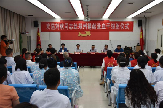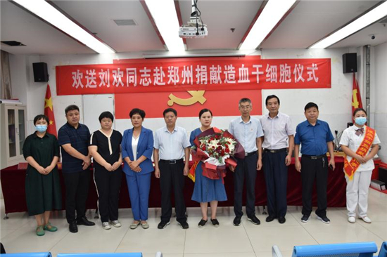“作為一名醫(yī)務(wù)人員,能為患者帶來生的希望,無論如何我都不會(huì)拒絕。希望捐獻(xiàn)后那位患者能早日康復(fù),投入新生活……” 7月22日上午,在西華縣中醫(yī)院會(huì)議室舉行的劉歡同志赴鄭州捐獻(xiàn)造血干細(xì)胞歡送儀式上,這位來自該院骨科護(hù)士長的一番話贏得現(xiàn)場(chǎng)陣陣掌聲。市紅十字會(huì)常務(wù)副會(huì)長毛立營,市紅十字會(huì)秘書長高春,西華縣委副書記郭峰,西華縣人民政府副縣長、紅十字會(huì)會(huì)長張翠霞,西華縣衛(wèi)健委副主任胡濤,西華縣中醫(yī)院院長高彥博等出席歡送儀式。