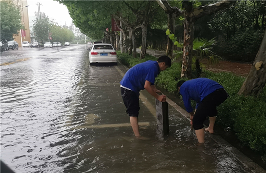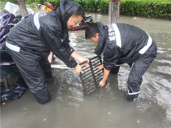 從7月21日傍晚起,商水縣普降暴雨,縣城區(qū)內(nèi)多處道路被淹,為保障群眾出行安全,縣城管局迅速啟動(dòng)防汛排澇緊急預(yù)案,多措并舉,全力開(kāi)展防汛排澇工作。圖為7月22日,商水縣城管局應(yīng)急人員在商慶路北段徒手對(duì)道路雨水管網(wǎng)排水口進(jìn)行疏通。