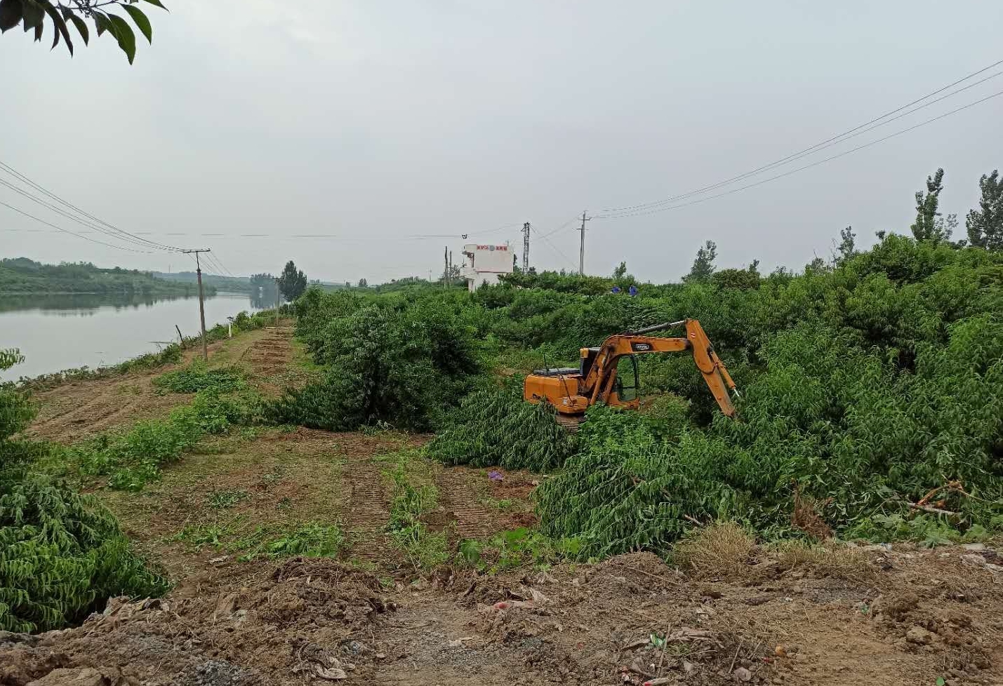 同時,該縣以《水法》《防洪法》《河道管理條例》等法律法規(guī),以及中共中央辦公廳、國務(wù)院辦公廳《關(guān)于全面推行河長制的意見》《河南省全面推行河長制工作方案》《河南省總河長令(第2號)》《河南省持續(xù)開展河湖“清四亂”行動方案》等重要文件為依據(jù),對河道管理范圍內(nèi)“四亂”問題進(jìn)行依法清理整治。潁河黃橋閘上下游灘地存在阻水林木,屬“亂占”行為。黃橋鄉(xiāng)政府與河道管理部門實地查看,制定清理方案,劃出清理范圍線,按照潁河防洪要求和管理實際情況,對潁河保證水位線以下高桿作物,樹木全部清理,確保防洪安全。目前,按照清理范圍,潁河黃橋管理段日出動挖掘機械四臺,已清理桃樹170棵、楊樹40棵、梧桐樹110棵、雜樹7畝,清理河道長1200米。