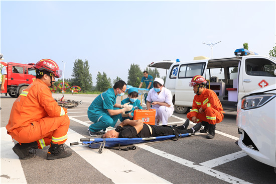 這是一場(chǎng)由多個(gè)部門(mén)共同參與的應(yīng)急演練,目的是為了提高處置重大交通事故的能力,切實(shí)增強(qiáng)道路交通事故處理部門(mén)應(yīng)急處置救援能力和水平,最大限度降低事故損失,維護(hù)人民群眾生命財(cái)產(chǎn)安全,提升交通事故快速處警、及時(shí)救援、有效救治、妥善救治的“四位一體”協(xié)作機(jī)制效能。