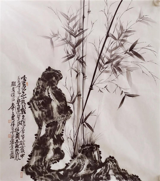 最近,懷章先生送我一幅新創(chuàng)作的竹石圖裝點(diǎn)陋室。送去琉璃廠裝裱做框,裱畫(huà)師傅看到這幅畫(huà),眼睛一下就亮了:這個(gè)畫(huà),真好!看落款就知道有功夫。