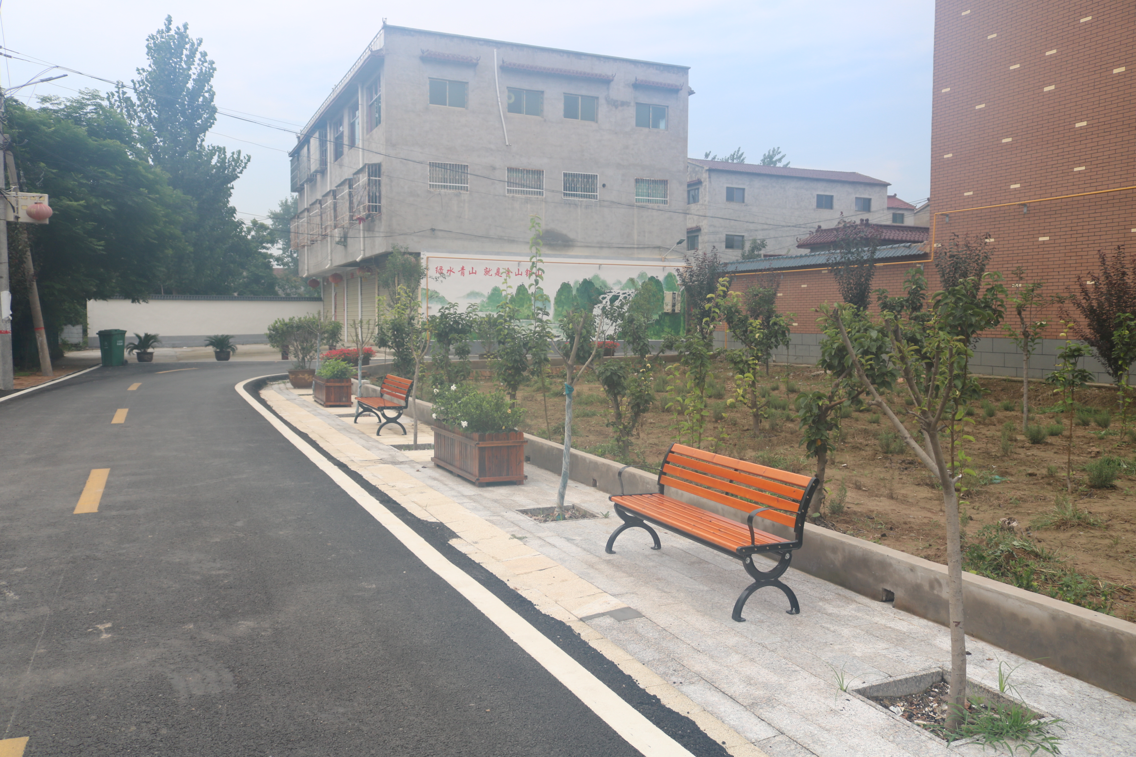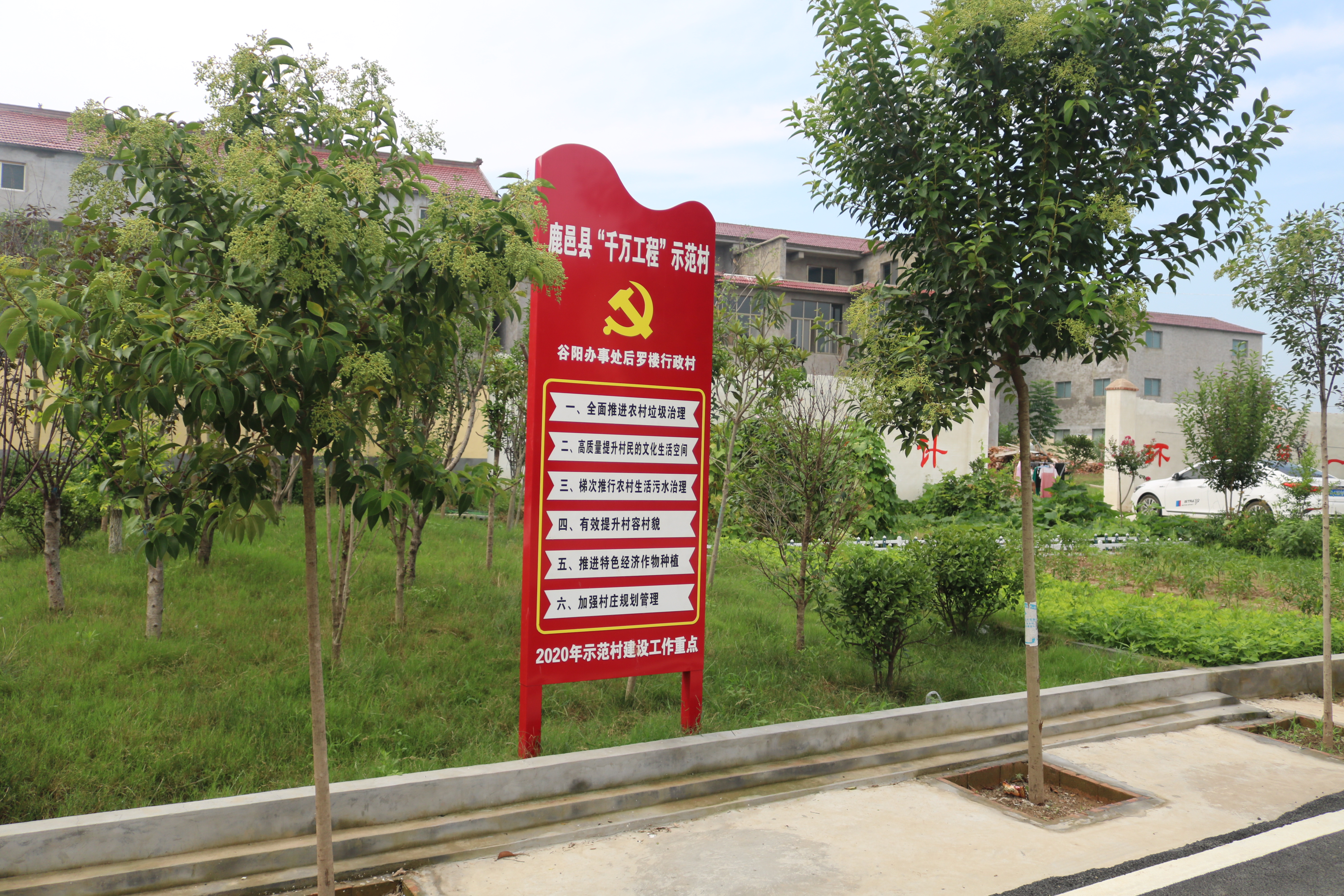 從該縣紫氣大道中段出發(fā),大約10分鐘的車程便抵達(dá)了后羅樓村。在該村東入口,一塊標(biāo)注有“鹿邑縣千萬工程示范村——后羅樓村”的標(biāo)牌格外引人注目。走進(jìn)村中,看到的是一棟棟錯(cuò)落有致的樓院,一條條新修的進(jìn)村道路標(biāo)線施劃有序、整潔的村道兩旁點(diǎn)綴著蔥郁的果樹,一幅恬靜悠然、生態(tài)宜居的美麗鄉(xiāng)村景象呈現(xiàn)在眼前。該村村室位于村南頭,在鮮花的果樹的掩映下,幾個(gè)保潔工作正在黨群服務(wù)中心和群眾文化廣場對面的果園除草,村室內(nèi)工作人員正在為前來辦事的村民辦理公務(wù)。