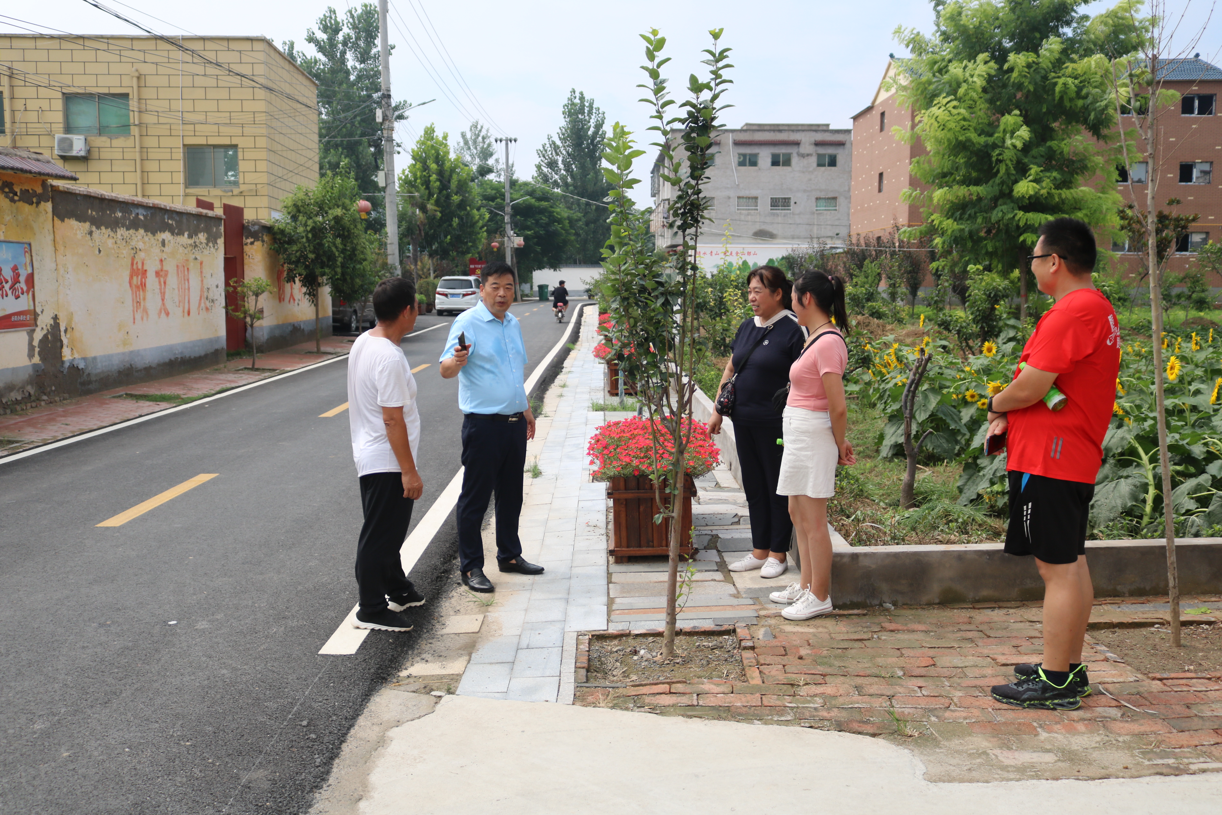 “我們先從整治道路坑塘空宅院、清理門前屋后的‘四大堆’開始,充分利用原生態(tài)的自然資源,從凈化、美化、亮化做起,放魚苗、栽果樹、種油葵鮮花,搞特色產(chǎn)業(yè)、種植養(yǎng)殖,以生態(tài)文明觀改造傳統(tǒng)農(nóng)業(yè),以生態(tài)文化提升鄉(xiāng)村文明,以生態(tài)文明統(tǒng)領(lǐng)鄉(xiāng)村振興。讓群眾有好看的景色、有休閑娛樂的地方?!绷_超說,“六村共建”活動(dòng)開展前,村里的狀況是散、亂、差,村兩委班子就想著怎么才能改變村里的現(xiàn)狀,經(jīng)過一年多的治理,村里的狀況有了明顯的改善。只有盯住頑疾,補(bǔ)齊短板,美麗村莊才能既有“面子”,更有“里子”。通過著力完善垃圾處理、污水處理、公共服務(wù)等配套設(shè)施,持續(xù)提升農(nóng)村環(huán)境質(zhì)量,留下鄉(xiāng)情鄉(xiāng)?,才能真正讓人記得住鄉(xiāng)味、留得下鄉(xiāng)愁。
