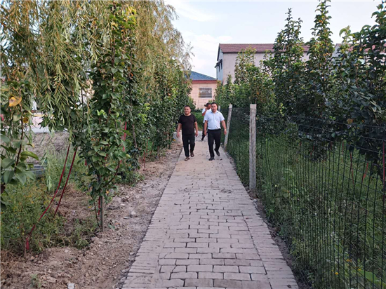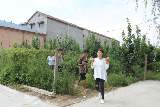 上任伊始,許天勇充分利用水域面積大的優(yōu)勢(shì),發(fā)展鄉(xiāng)村旅游經(jīng)濟(jì),把整理出來(lái)的水域種上了荷花,放上了魚(yú)苗,在村里還建起了四橦民宿建筑,在廣場(chǎng)邊村里統(tǒng)一管理的一處民宿內(nèi)興辦了特色餐飲,讓來(lái)這里垂釣的人有得玩、有得吃、還有得住。許天勇指著許莊村頭的一處坑塘說(shuō):“這是我們治理出來(lái)比較大的一處,鎮(zhèn)里牽頭在坑塘兩側(cè)建起了扶貧富民冷庫(kù),還建成1200多平方米的游園、近3000平方米的垂釣園,另外,村里又把平整出14.2畝土地種上的梨樹(shù),承包給村民進(jìn)行果蔬間作,現(xiàn)在梨樹(shù)已進(jìn)入盛果期,預(yù)計(jì)今年凈收益4萬(wàn)元左右。”