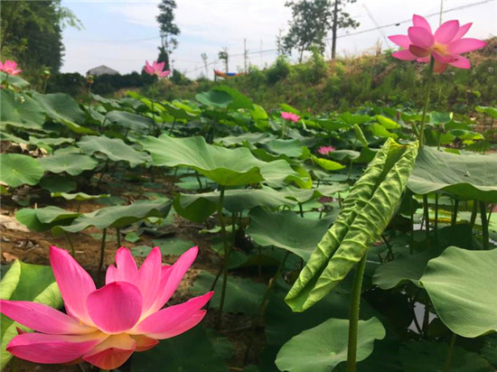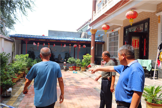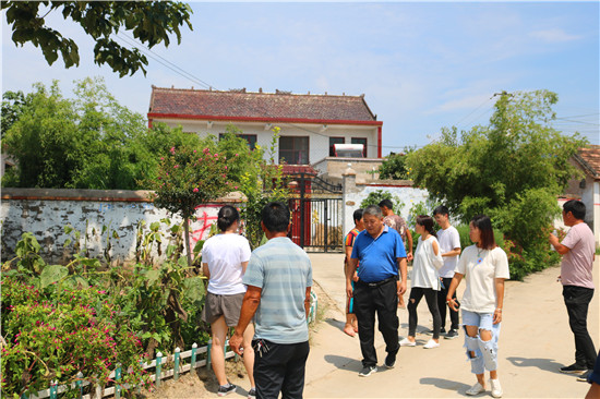 該鎮(zhèn)完樓村是袁征口中的4.0版鄉(xiāng)村振興的最具代表性的村落之一。完樓行政村轄完樓、完天齊廟、黃盆窯、代洼、代小莊、許莊、吳菜園、付樓、劉莊9個自然村,耕地面積3331畝,總人口3100余人。2018年那次村委換屆,常年經營鋼材生意的許天勇被大伙推選為村支部書記,成了該村的致富領頭雁。上任伊始,許天勇充分利用水域面積大的優(yōu)勢,發(fā)展鄉(xiāng)村旅游經濟,把整理出來的水域種上了荷花,放上了魚苗,在村里還建起了四橦民宿建筑,在廣場邊村里統(tǒng)一管理的一處民宿內興辦了特色餐飲,讓來這里垂釣的人有得玩、有得吃、還有得住。