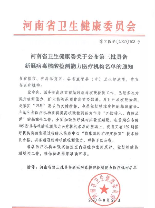 近日,鄲城縣婦幼保健院PCR核酸檢測實驗室通過了河南省臨床檢驗中心的室間質(zhì)量評價和實驗室二級生物安全備案,已具備新冠病毒核酸檢測能力,可承擔(dān)新冠病毒核酸檢測工作。目前,各高校正在陸續(xù)開學(xué),但新冠疫情仍未完全控制,按照疫情防控要求,報到學(xué)生需進行一次核酸檢測,持報告單入學(xué)報到。鄲城縣婦幼保健院作為河南省衛(wèi)生健康委員會批準的新冠核酸檢測機構(gòu),積極承擔(dān)社會責(zé)任,按照“應(yīng)檢盡檢,愿檢盡檢”的原則,已經(jīng)于2020年9月1日起正式開展新冠病毒核酸檢測工作,希望廣大學(xué)子及有檢測需要的人員,本著對自己負責(zé)、對家庭負責(zé)、對社會負責(zé)的原則,積極檢測,為疫情防控工作貢獻力量。