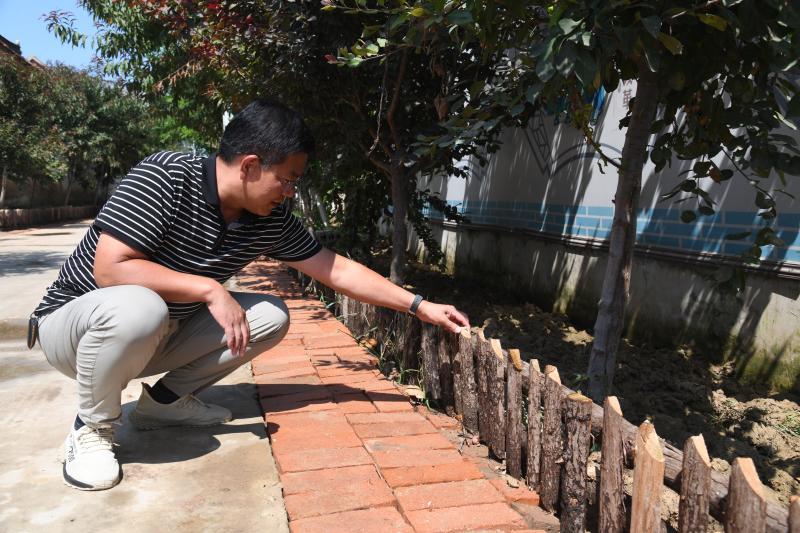 9月17日,商水縣鄧城鎮(zhèn)干部在路口村檢查用杉木制作的圍欄。該鎮(zhèn)在農(nóng)村人居環(huán)境整治中,本著“少花錢、多事辦”原則,充分發(fā)動(dòng)群眾參與,因地制宜,因陋就簡(jiǎn),努力打造各具特色的村容村貌。這種自制的杉木圍欄使用壽命和鋼塑材料一樣,制作成本節(jié)約一倍,因其物美價(jià)廉受到村民的喜愛(ài)。①15