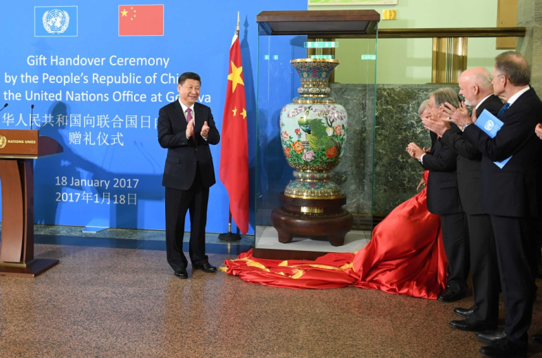 2017年1月18日,習(xí)近平主席出席中國(guó)向聯(lián)合國(guó)日內(nèi)瓦總部贈(zèng)禮儀式。