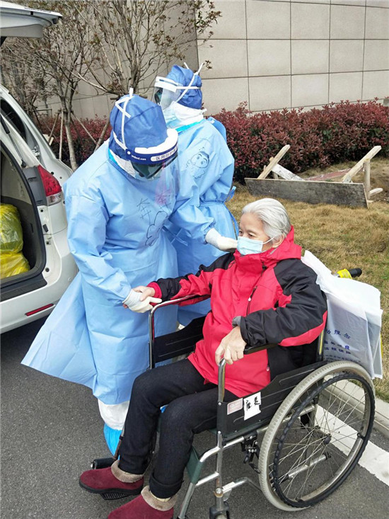 今年74歲的李秀紅,不僅感染新冠肺炎,而且罹患老年癡呆,生活需要時時照顧,而且剛?cè)朐簳r,對陌生環(huán)境的恐懼造成她心情壓抑,天天不說話,時不時落淚。為了讓老人放下心理包袱,胡奔奔在進行哄喂吃飯、服藥等正常護理之余,經(jīng)常陪老人聊天、唱歌,后來老人情緒明顯好轉(zhuǎn),還主動與胡奔奔一起扭起了舞蹈。后來,老人康復(fù)出院時,雖然無言 卻一直緊緊抓著胡奔奔的手久久不愿放開。胡奔奔說,那一刻,她落淚了,但心里確實說不出的高興。
