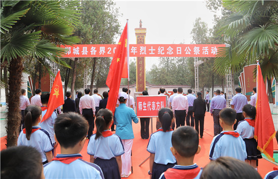 鄲城大地存浩氣,蒼松翠柏祭英烈。9月30日,鄲城縣在烈士陵園舉行2020年烈士紀念日公祭活動,市人大常委會副主任、鄲城縣委書記羅文閣,縣長李全林,縣人大常委會主任李建軍,縣政協(xié)主席王偉等縣四個班子領(lǐng)導(dǎo),全縣副處級以上領(lǐng)導(dǎo)干部,縣直各單位負責人,23個鄉(xiāng)鎮(zhèn)辦負責人,退役軍人代表、師生代表和社會各界人士,一同祭奠革命先烈,激勵全縣上下不忘初心、牢記使命,為鄲城縣高質(zhì)量發(fā)展而不懈奮斗。