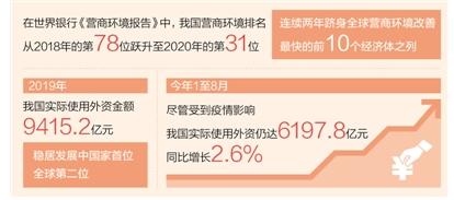 “十三五”期間,我國持續(xù)深化體制機制改革,全方位擴大對外開放,降低準入門檻,提升服務質量。在世界銀行《營商環(huán)境報告》中,我國營商環(huán)境排名從2018年的第78位躍升至2020年的第31位,連續(xù)兩年躋身全球營商環(huán)境改善最快的前10個經濟體之列。