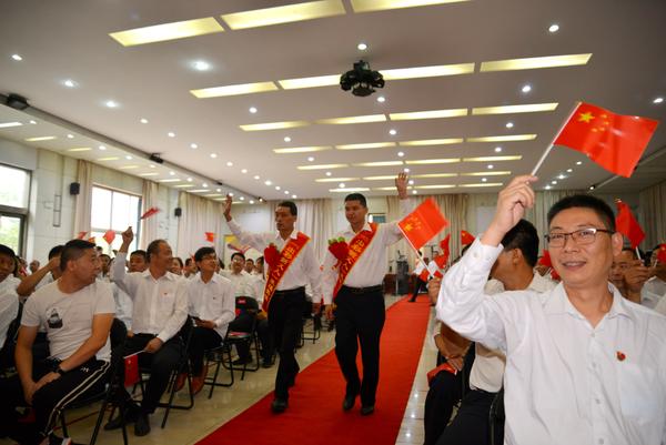 16名“出彩新義人”和8名提名獎(jiǎng)獲得者,身披綬帶,胸帶紅花,在全體職工的注視下,揮手走過紅毯通道。伴著激昂的音樂,在“出彩新義人”簽名墻上簽上自己的名字,臺下的員工家屬熱情的揮動(dòng)著手中的國旗,為他們吶喊、鼓掌……