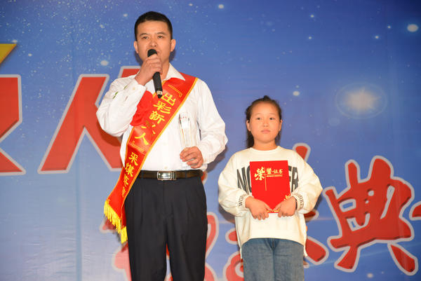 “節(jié)約能手”掘進(jìn)一隊(duì)職工師振東在頒獎(jiǎng)臺上接過12歲女兒頒發(fā)的獎(jiǎng)杯后,還得到了“小棉襖”的熱情擁抱。