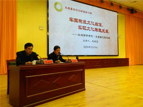 朱樹喜用真摯的情感、樸實的語言、親身的經(jīng)歷和深切的感悟,給全體人員進行了精彩授課。朱樹喜的報告高屋建瓴、內(nèi)涵豐富、博學卓識,既站位高遠,又緊貼太康實際;既有精道的理論,又有豐富的實踐,必將為太康文化建設健康發(fā)展起到不可估量的作用。