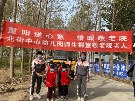 在九九重陽節(jié)來臨之際,東夏亭鎮(zhèn)北街中心幼兒園師生到鎮(zhèn)敬老院看望慰問老人。為敬老院的老人們帶來水果、餅干等慰問品,也給老人們帶來了心靈上的慰藉。