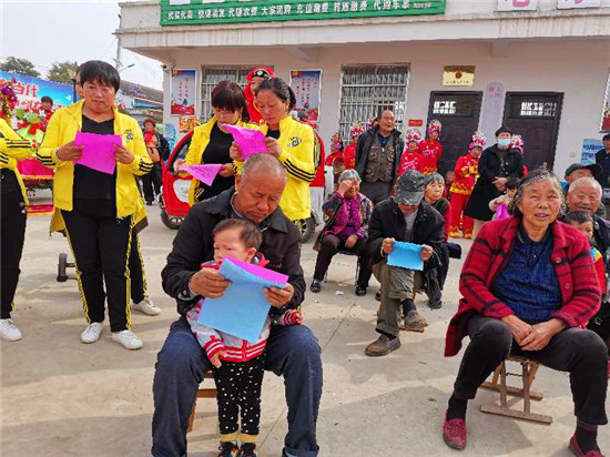 “俺家住在老冢鎮(zhèn),平安建設(shè)常宣傳。專(zhuān)職巡邏無(wú)被盜,提高群眾安全感……”這是10月20日,在太康縣老冢鎮(zhèn)新李村文化廣場(chǎng)上村民們表演的方言快板《安全感調(diào)查》,通俗易懂的語(yǔ)言,精彩有趣的說(shuō)唱贏得了在場(chǎng)群眾的陣陣掌聲。