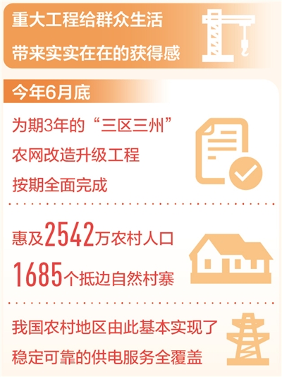 從“用上電”到“用好電”,今年6月底,為期3年的“三區(qū)三州”農(nóng)網(wǎng)改造升級工程按期全面完成,惠及2542萬農(nóng)村人口、1685個抵邊自然村寨,我國農(nóng)村地區(qū)由此基本實(shí)現(xiàn)了穩(wěn)定可靠的供電服務(wù)全覆蓋。