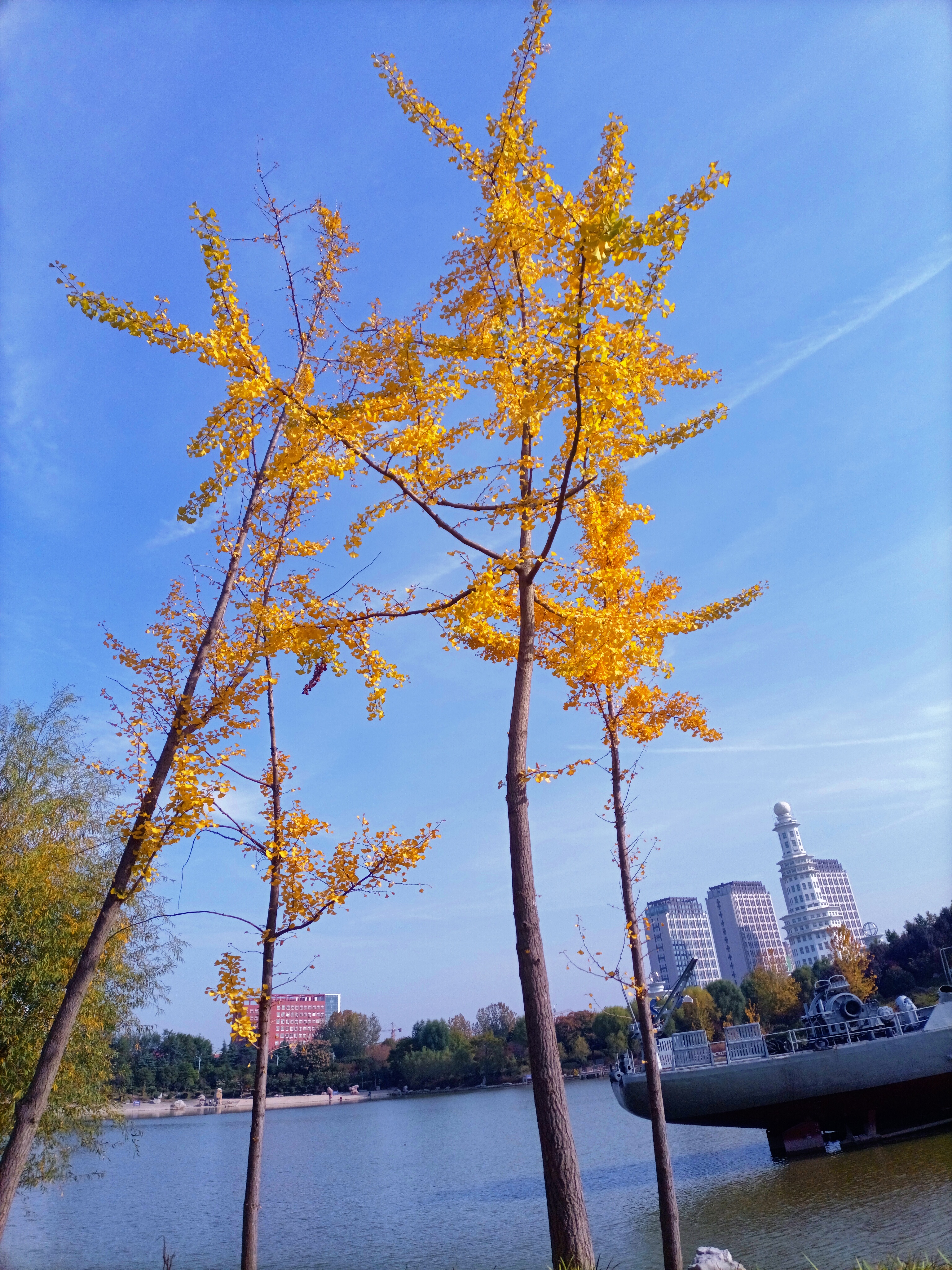 一朝身入銀杏林,葉落風卷滿地金。進入深秋,銀杏樹的葉子由綠色漸漸變成金黃。金燦燦的葉子在陽光的映照下,顯得格外漂亮。圖為周口公園的銀杏林。③5