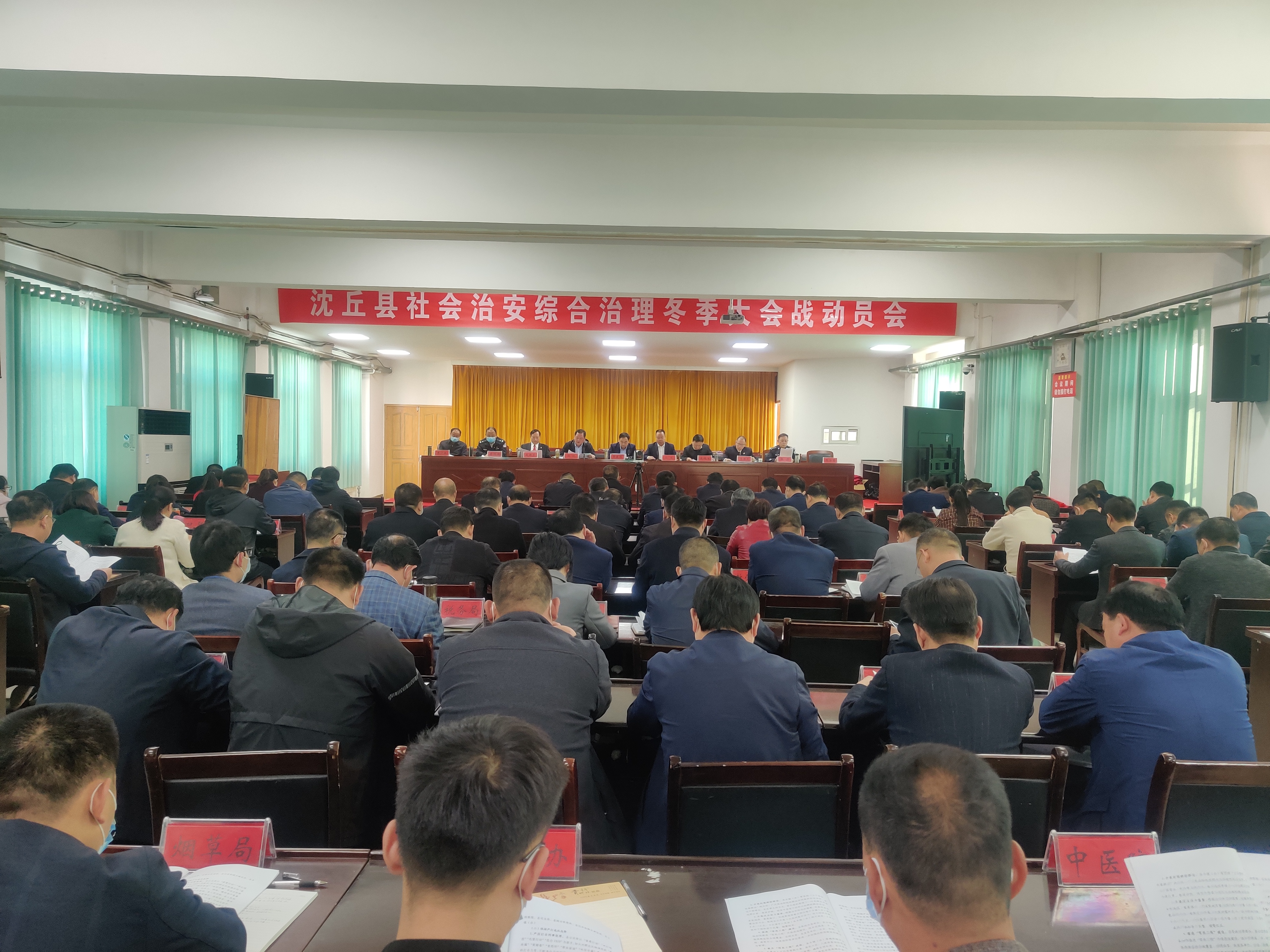 11月4日,沈丘縣組織召開社會(huì)治安綜合治理冬季大會(huì)戰(zhàn)動(dòng)員會(huì)??h領(lǐng)導(dǎo)賈慶偉、段然、張銳、鹿槐生、趙振勇、李世龍、李恒新、張彥、李廣其出席會(huì)議。縣直各單位及各鄉(xiāng)鎮(zhèn)(辦)主要負(fù)責(zé)人參加會(huì)議。會(huì)上,副縣長張銳宣讀了《沈丘社會(huì)治安綜合治理大會(huì)戰(zhàn)工作方案》。