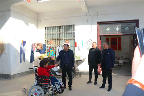 隨后,劉施恩一行前往大許寨鎮(zhèn)張樓村和風(fēng)喜、葛花李村李清城、葛花李村張治業(yè)、君趙村李盼盼等貧困戶(hù)家中,每到一處都與貧困群眾親切交流,詢(xún)問(wèn)身體狀況、家庭收入及住房情況。在了解到和風(fēng)喜孤身一人支撐家庭,拉扯兩個(gè)孩子上學(xué),生活十分艱難的情況后,曹長(zhǎng)江向其捐贈(zèng)了5000元現(xiàn)金,鼓勵(lì)她要對(duì)生活有信心,相信國(guó)家的扶貧政策和自然資源局的幫扶工作,早日克服暫時(shí)的困難。并向她送去祝福,祝愿她今后的日子越過(guò)越好。