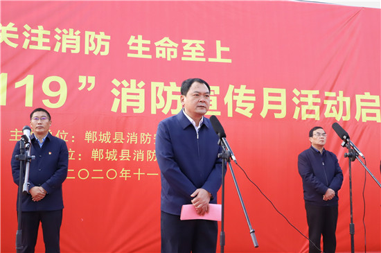 11月11日,鄲城縣在世紀(jì)廣場舉行2020年消防宣傳月活動啟動儀式,目的是進(jìn)一步提高全民消防安全意識,促使“關(guān)注消防 生命至上”的主題深入人心,廣泛發(fā)動社會各界關(guān)注消防、參與消防,營造良好的宣傳氛圍,預(yù)防和減少火災(zāi)事故發(fā)生,確保人民群眾生命財產(chǎn)安全。縣長李全林出席會議并宣布消防宣傳月活動啟動,縣委常委、常務(wù)副縣長胡友濤主持會議,縣領(lǐng)導(dǎo)謝超、王彪、陳鳳祥、李素梅及縣公安局政委趙紅建參加會議。