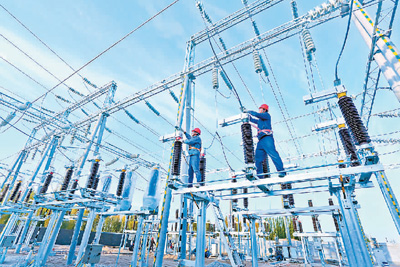 10月12日,甘肅省張掖市臨澤縣清潔能源供暖供電電網(wǎng)配套工程建設(shè)現(xiàn)場(chǎng),工作人員正在電塔上進(jìn)行最后的設(shè)備安裝調(diào)試?! ⊥?將攝(人民視覺(jué)) |
