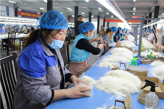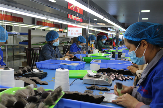 “從簡單的梳羊毛到如今做高檔化妝刷,從產業(yè)鏈的末端做到頂端,從養(yǎng)家糊口到賺外匯,經過多年的滾動發(fā)展,鹿邑縣硬是把尾毛化妝刷這種‘小手藝’做成了助推縣域經濟高質量發(fā)展的‘大產業(yè)’。目前,全縣大大小小的化妝刷企業(yè)達1000多家,尾毛出口總量占全國化妝刷原毛出口的80%,年產羊毛3000多噸、尼龍毛9000多噸,生產各類化妝刷1.5億套,產品遠銷20多個國家和地區(qū)。另外,作為尾毛的衍生產業(yè),羊毛衫加工產業(yè)近幾年的異軍突起,更是激活了全縣創(chuàng)業(yè)就業(yè)的一池春水。統(tǒng)計數字顯示,近幾年,鹿邑縣持續(xù)圍繞尾毛化妝刷特色產業(yè),強鏈延鏈補鏈,開展精準招商,化妝刷及配套企業(yè)已發(fā)展到135家,實現產值50多億元,出口創(chuàng)匯21億;羊毛衫紡織企業(yè)發(fā)展到54家,有電腦織機6500臺,年產各類針織服裝6000萬件,使鹿邑成為河南省最大的化妝刷生產基地、羊毛衫加工基地,帶動全縣7.5萬人創(chuàng)業(yè)就業(yè)。