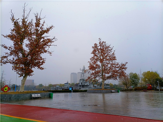 昨天剛過完小雪節(jié)氣,今天就下了一場(chǎng)雪。這場(chǎng)雪像是如期而至的約定,又似突如其來(lái)的驚喜,妝扮了整個(gè)城市。飛揚(yáng)的雪花落到地上,草葉上,枝頭上,瞬間融化成晶瑩的水珠,滋潤(rùn)著大地和萬(wàn)物,形成了秋與冬交接的獨(dú)特景色。