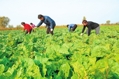 浚縣小河鎮(zhèn)張劉莊村村民喜收白菜本報記者郭戈攝 |